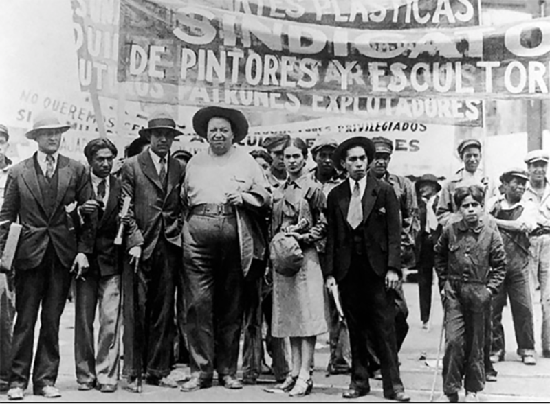 Diego Rivera and Frida Kahlo with members of the Artists’ Union at a May Day march in Mexico City, 1929.